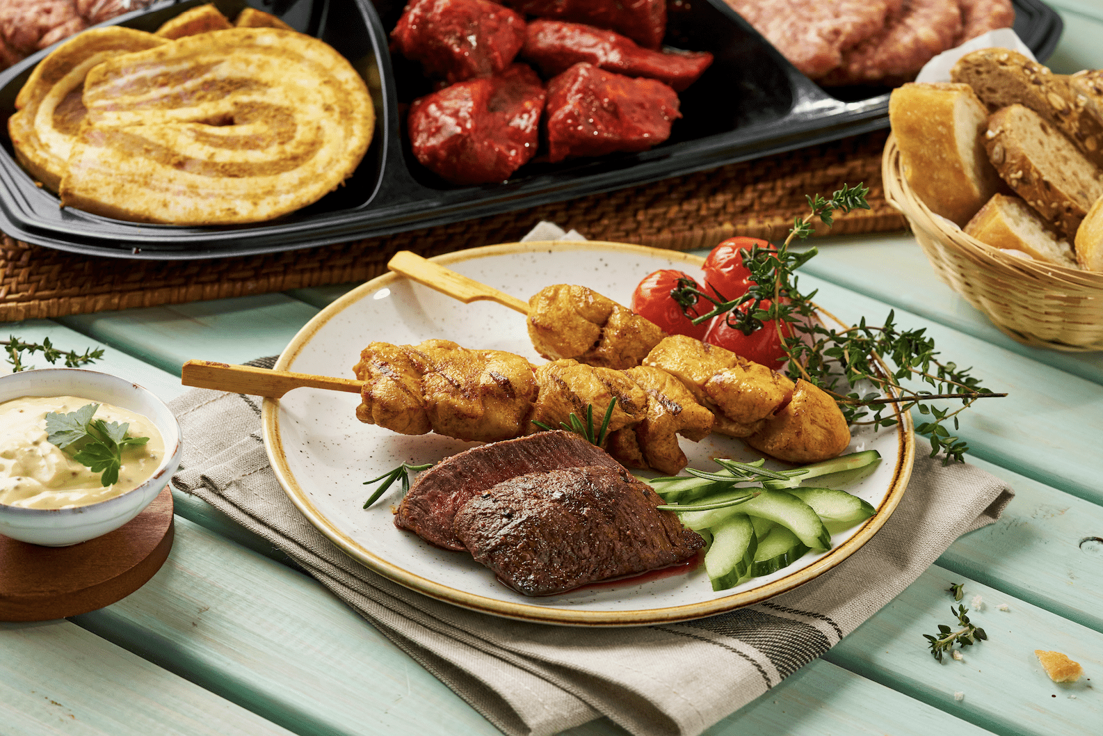 Geniet van een BBQ De Luxe pakket met de lekkerste stukken vlees, heerlijke salade en bijpassende sauzen. Alles wordt bij u thuis bezorgd en we doen zelfs de afwas!